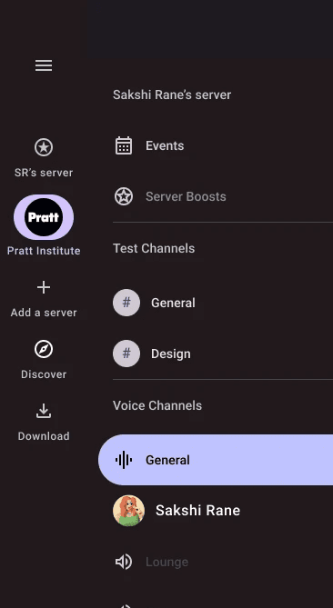 Discord's layout assumes three independent columns: server membership on the left, channel navigation in the middle, and content on the right. MD3 has clear names for two of these, which are Navigation Rail and Navigation Drawer, and precise rules for both.