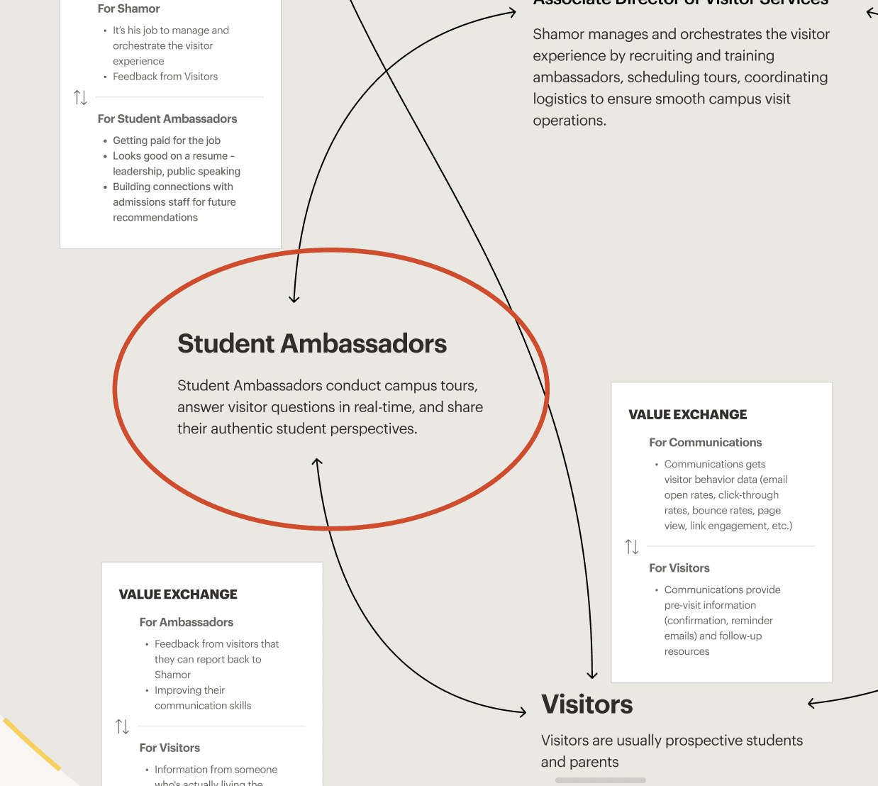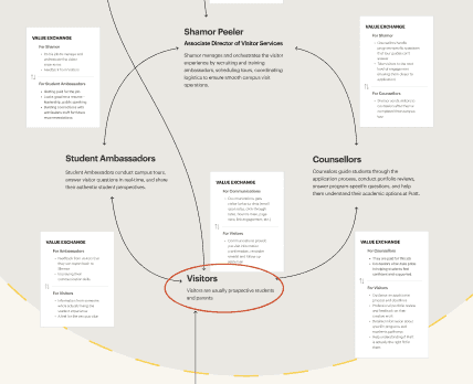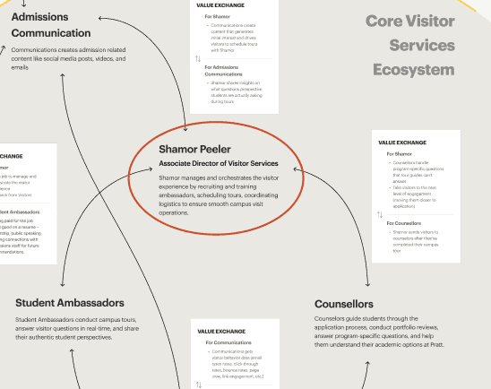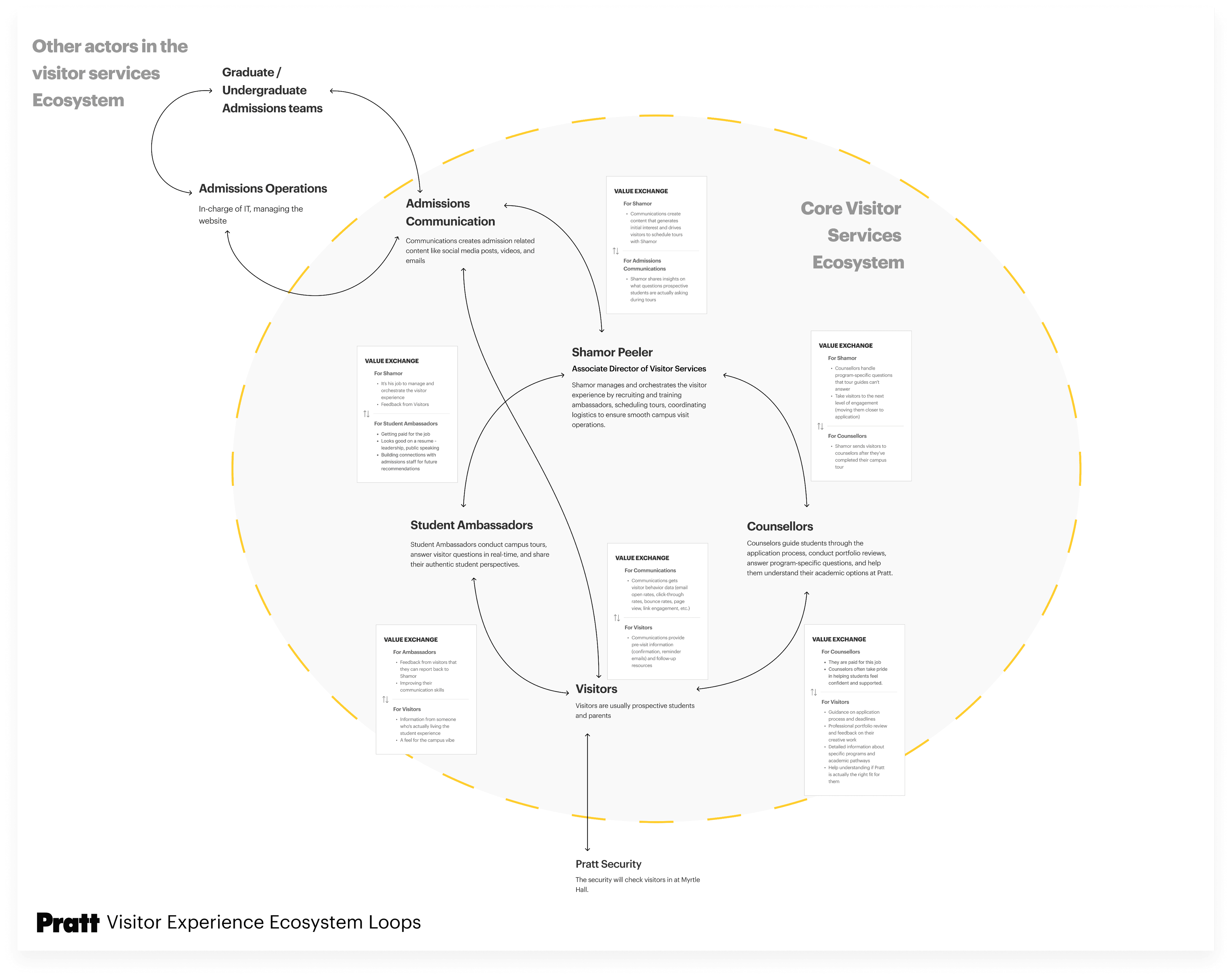 Every year, prospective students walk through Pratt’s campus trying to picture themselves as a part of the community. Student ambassadors guide them through these pivot moments, sharing their experience, answering questions, and shaping first impressions. The Key characters at Pratt involve multiple actors working together across different touchpoints to create a seamless experience for the visitors.