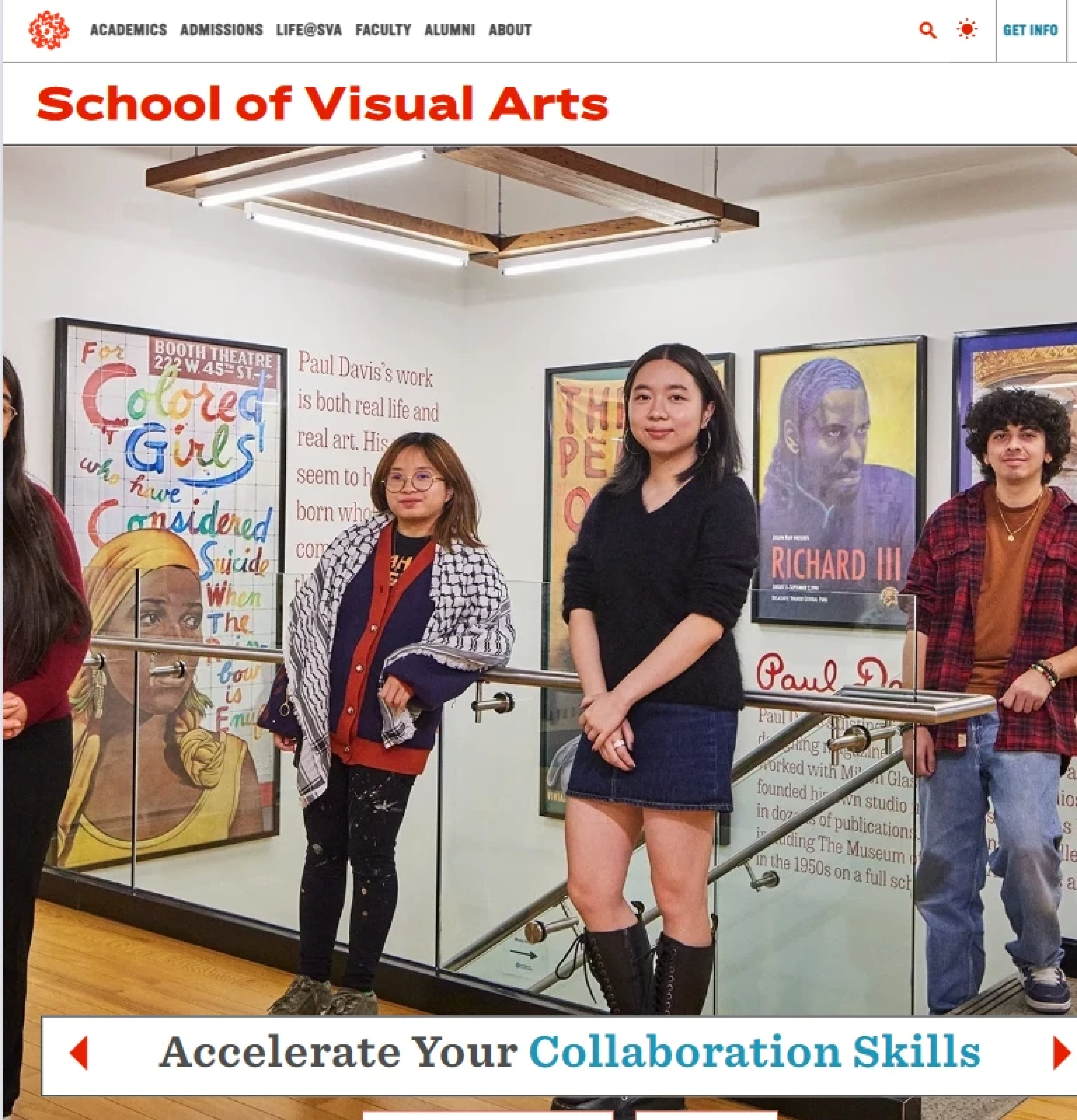 This is the go-to page for SVA students, and because it’s where most people land first, it has the biggest chance to make an impact.
