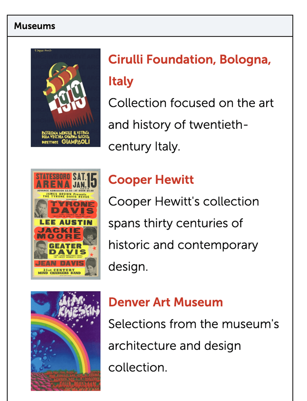 This page lists design archive resources and was chosen by the client as the key template for broader use.